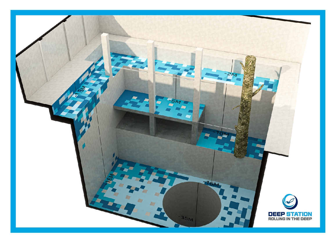 수심 2미터 다이나믹존, 수심 5미터, 수심 10미터, 수심 16미터, 수심 36미터 로 이루어진 국내 최대 수심 다이빙풀장